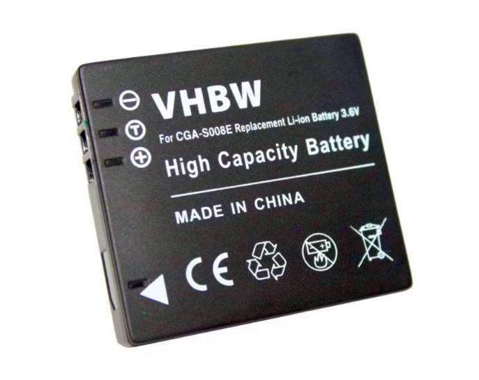 Baterie CGA-S008E, DMW-BCE10E pro kamery Panasonic Lumix DMC-FS20, DMC-FS3, DMC-FS5, DMC-FX30, DMC-FX33, DMC-FX35, DMC-FX36, DMC-FX37, DMC-FX38, DMC-FX500, DMC-FX520, DMC-FX55, SDR-S10, SDR-S15, SDR-S26, SDR-S7, SDR-S9, SDR-SW20 800mAh Li-Ion neoriginální